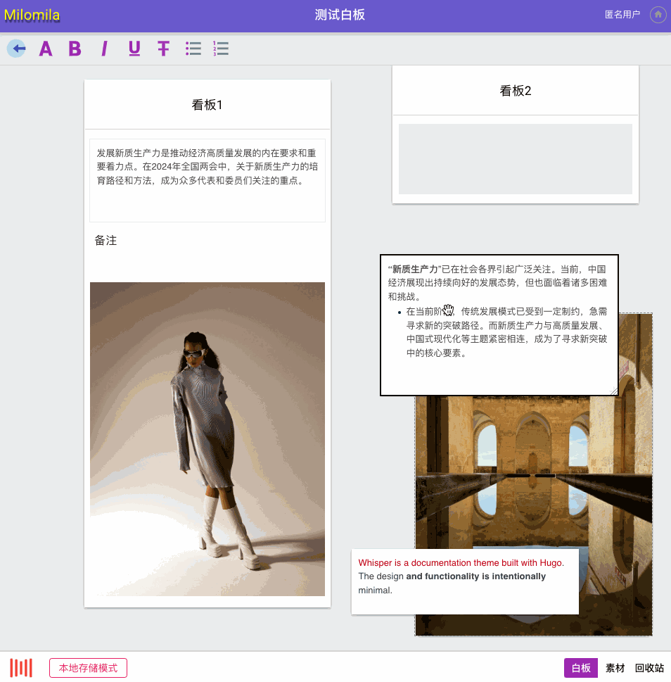 本产品基于分布式协同计算(CRDT)技术,综合 “协同文档、社交互动、业务流程” 三种操作模式, 以白板为交互工作平台,为您提供更加“自由、灵活、安全”的线上线下混合办公体验。